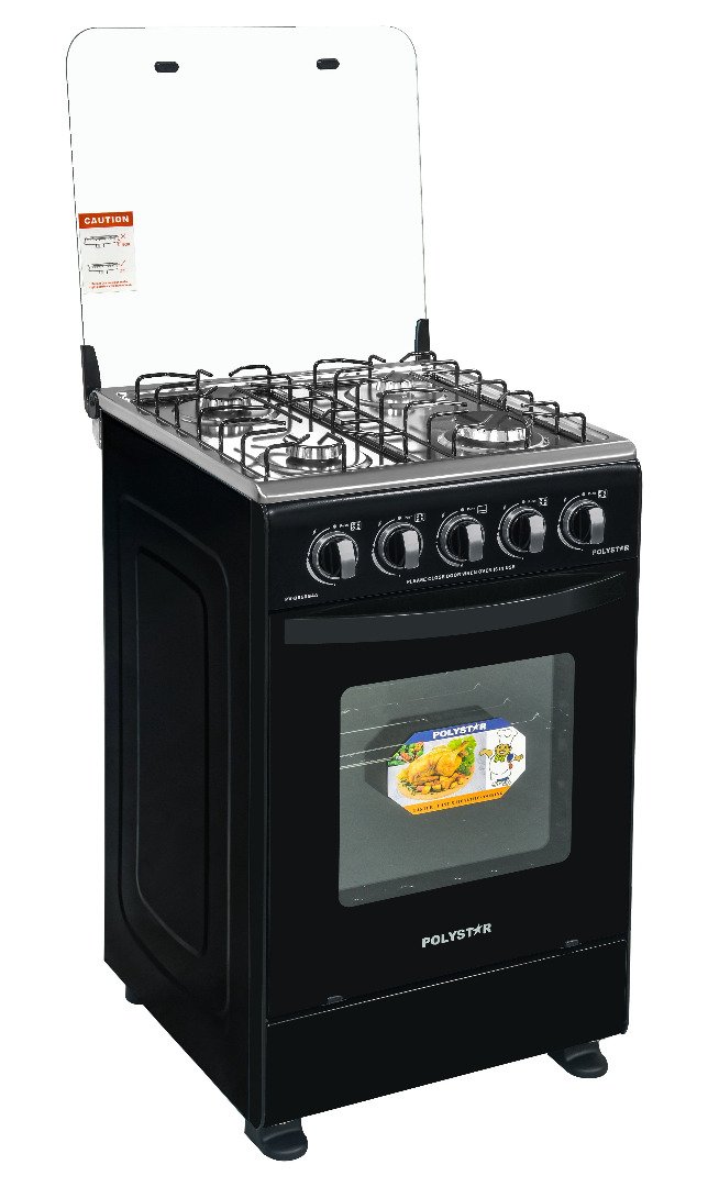 Polystar PV-BS55G4A 4-Burner Gas Cooker with Auto Ignition and Oven – Glass Top